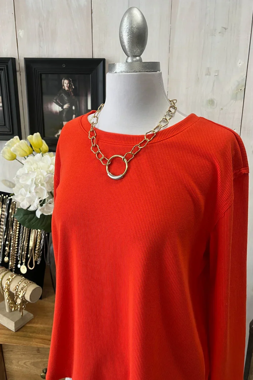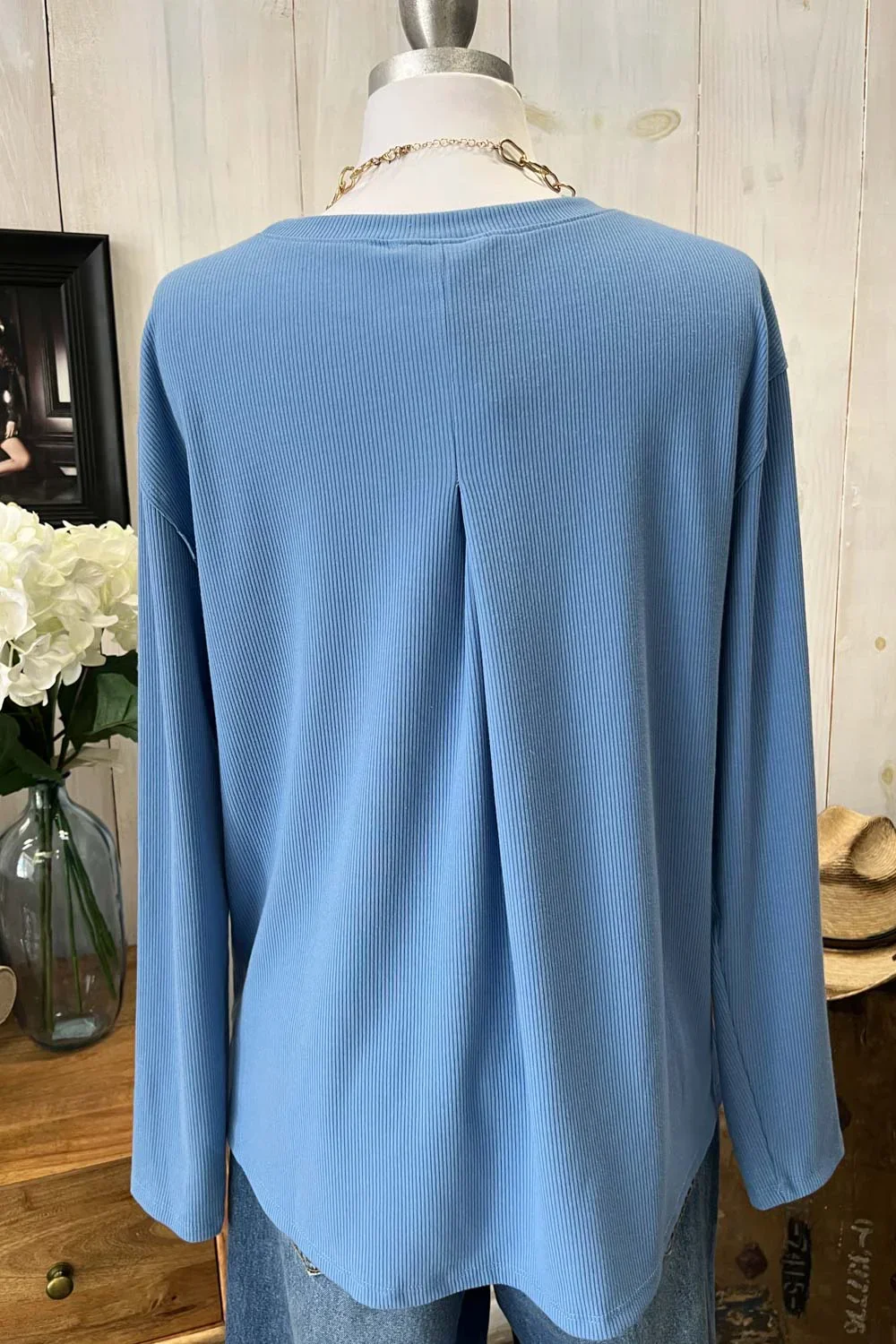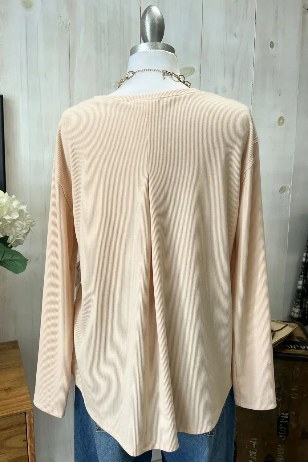 Soft Ribbed Knit Long Sleeve Scalloped Hem Relaxed Fit Oversize Boutique Top