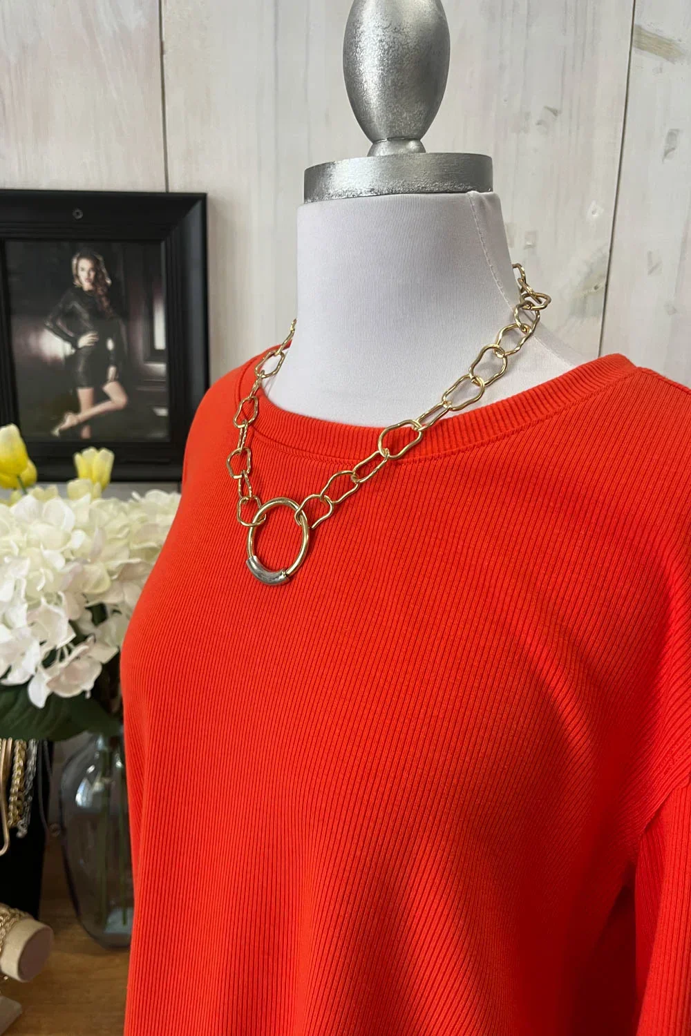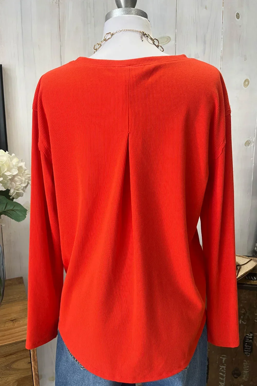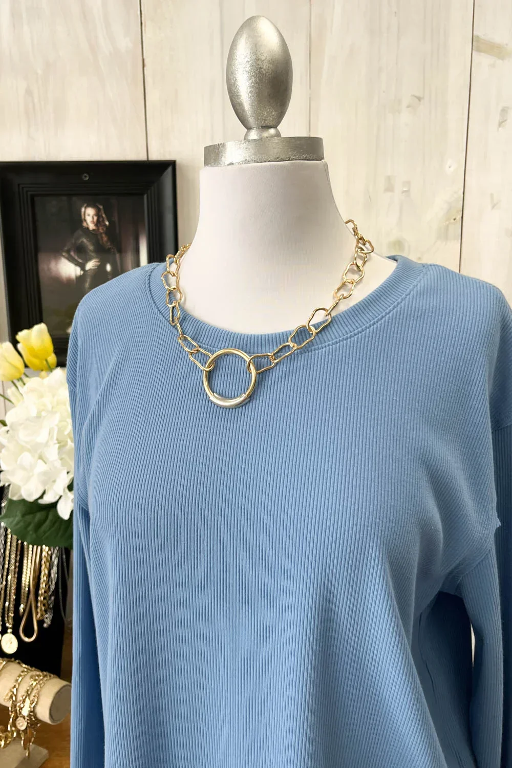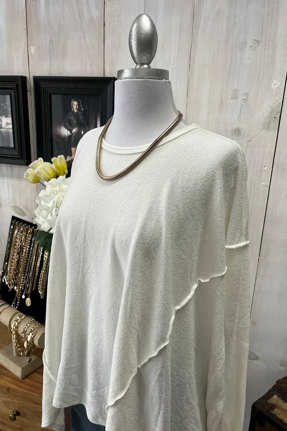 Soft Ribbed Knit Long Sleeve Scalloped Hem Relaxed Fit Oversize Boutique Top