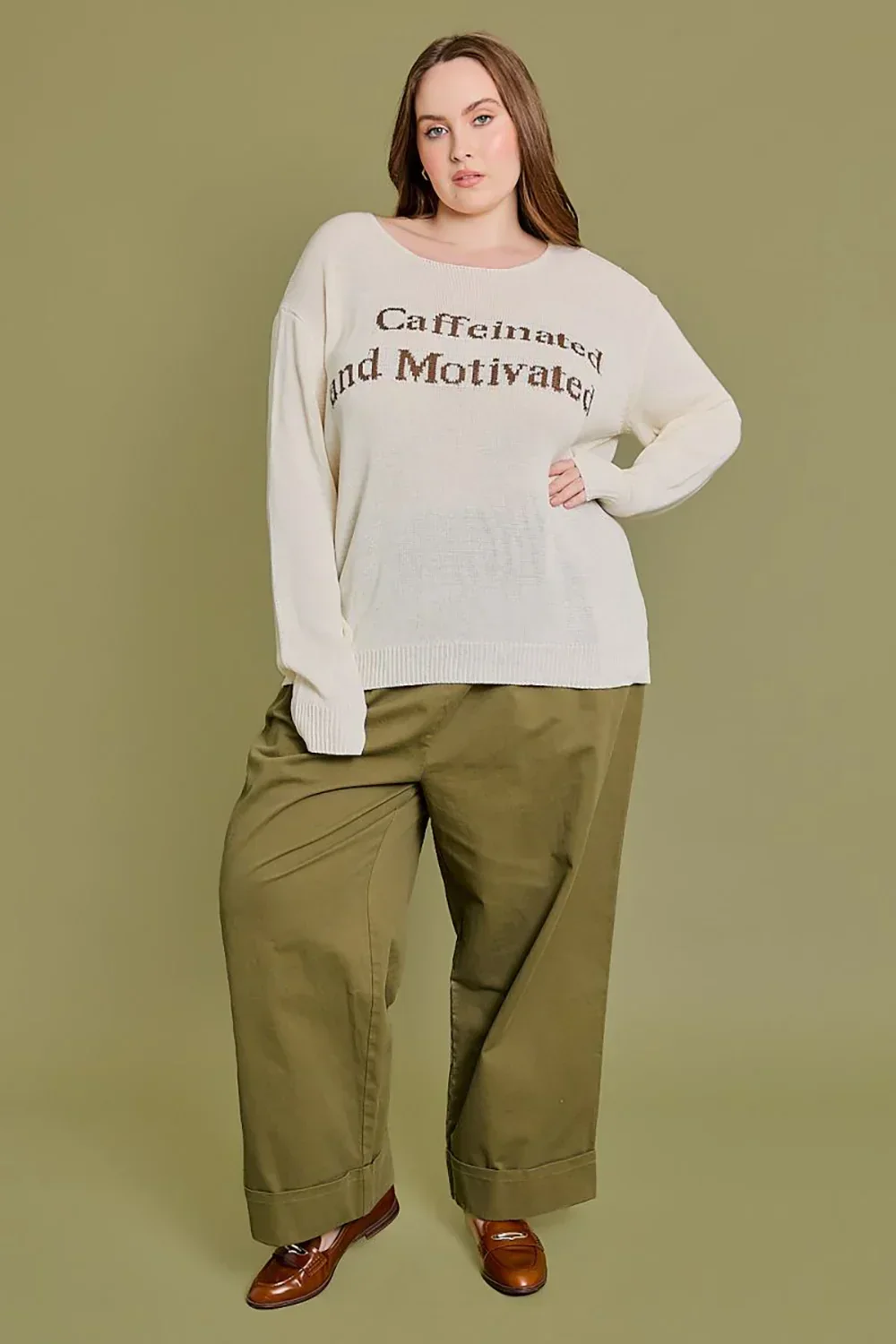 Plus Size Caffeinated and Motivated Knit Pullover Sweater