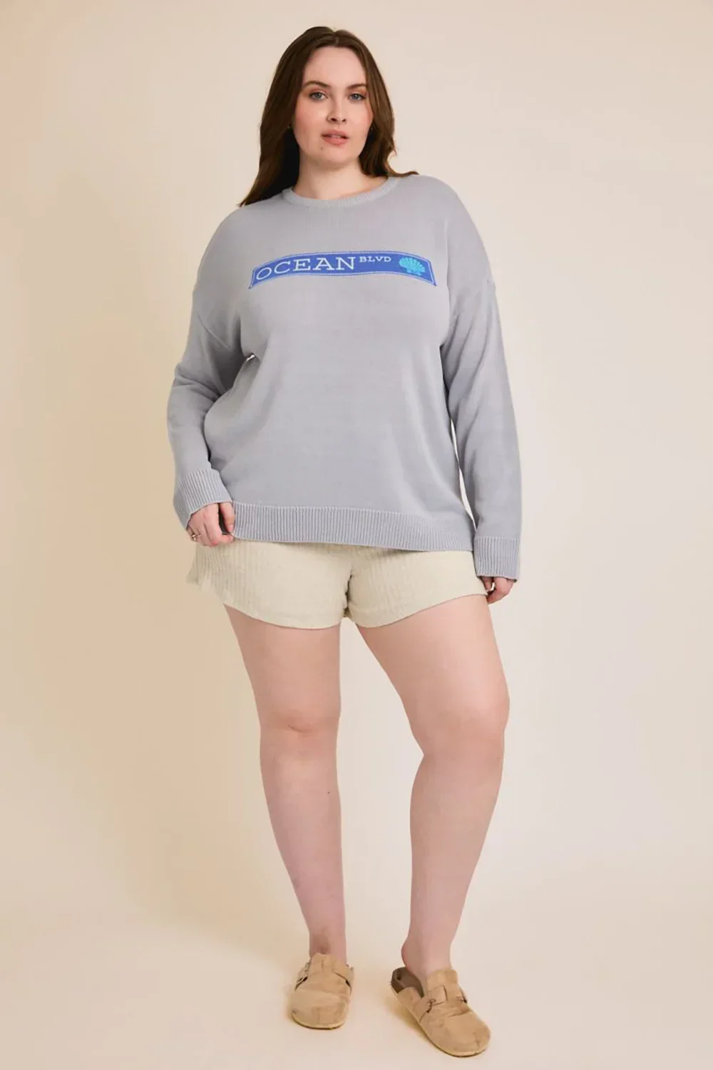 Plus Size OCEAN BLVD Graphic Knit Long Sleeve Crew Neck Boutique Sweater