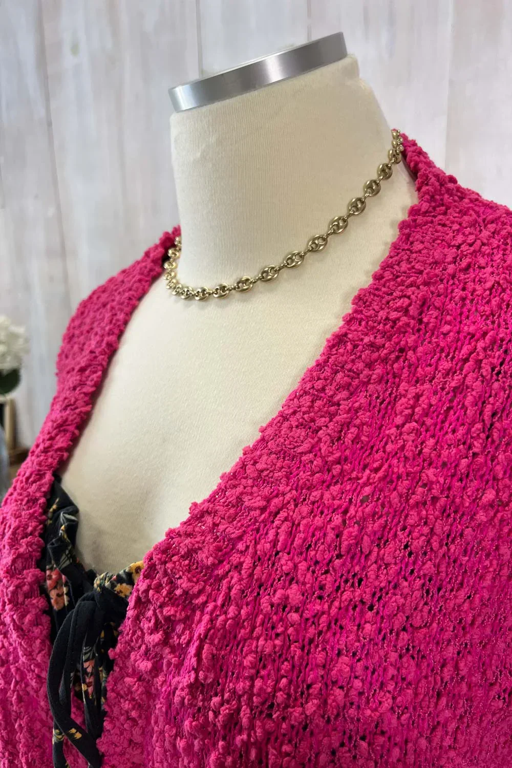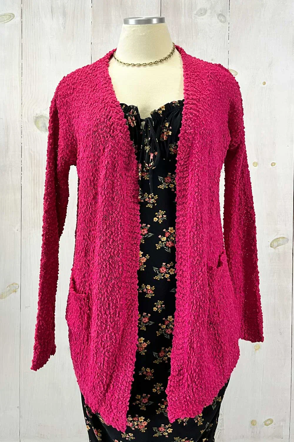 Plus Size Long Sleeve Popcorn Pattern Lightweight Open Cardigan