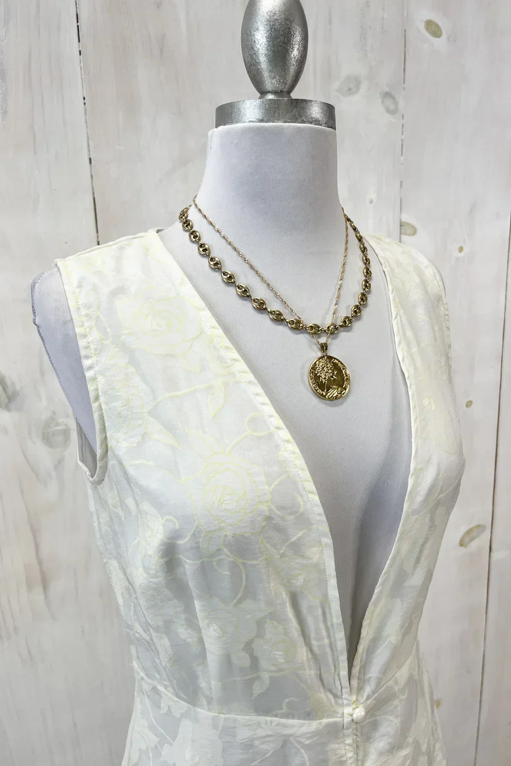 Sleeveless Floral Satin Button Down Front Slit Resort Dress