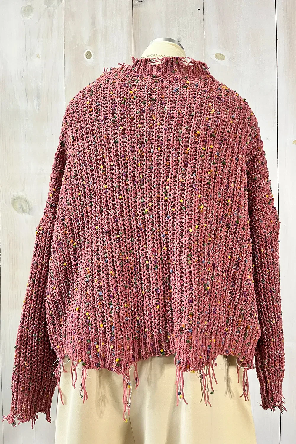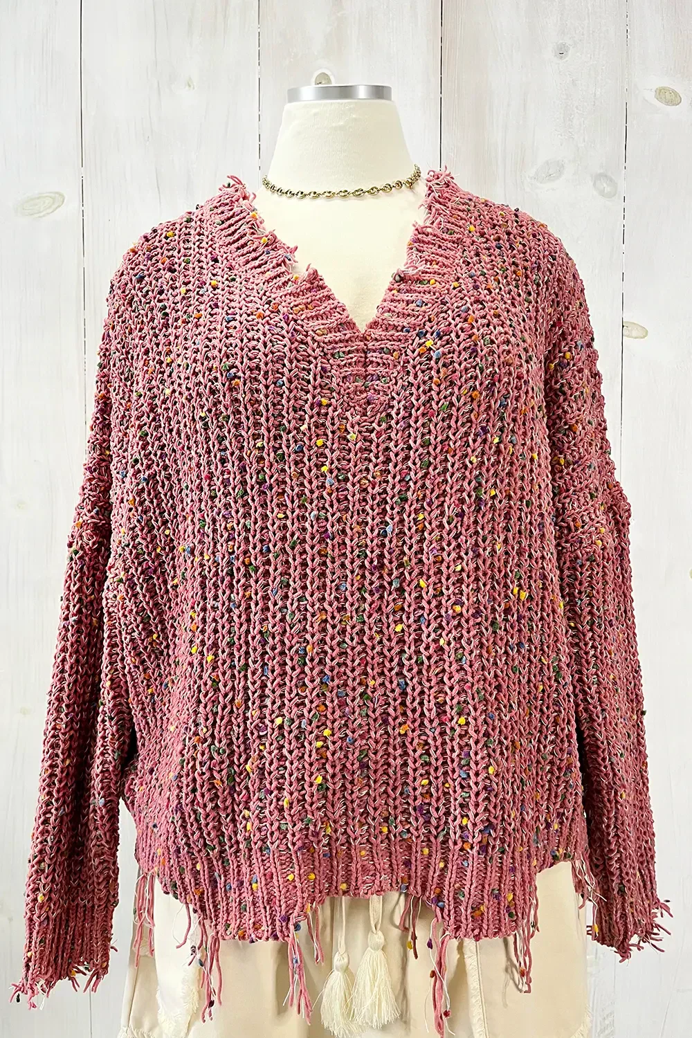 Plus Size Distressed Rainbow Pom Pom V-Neck Knit Sweater