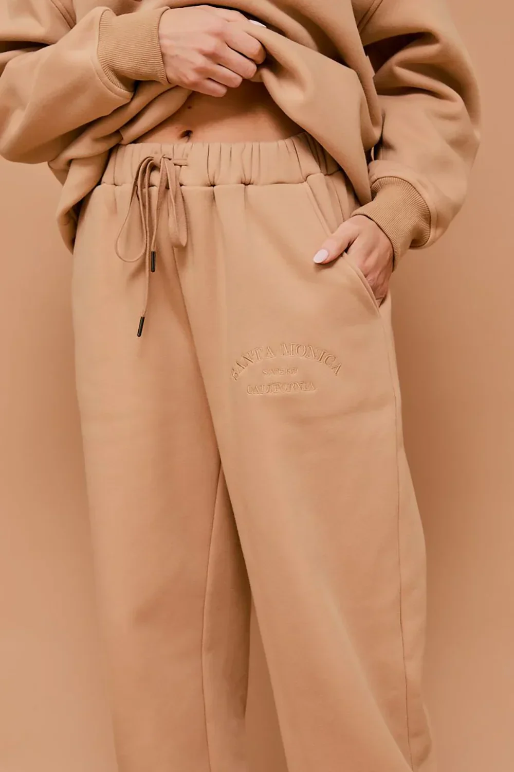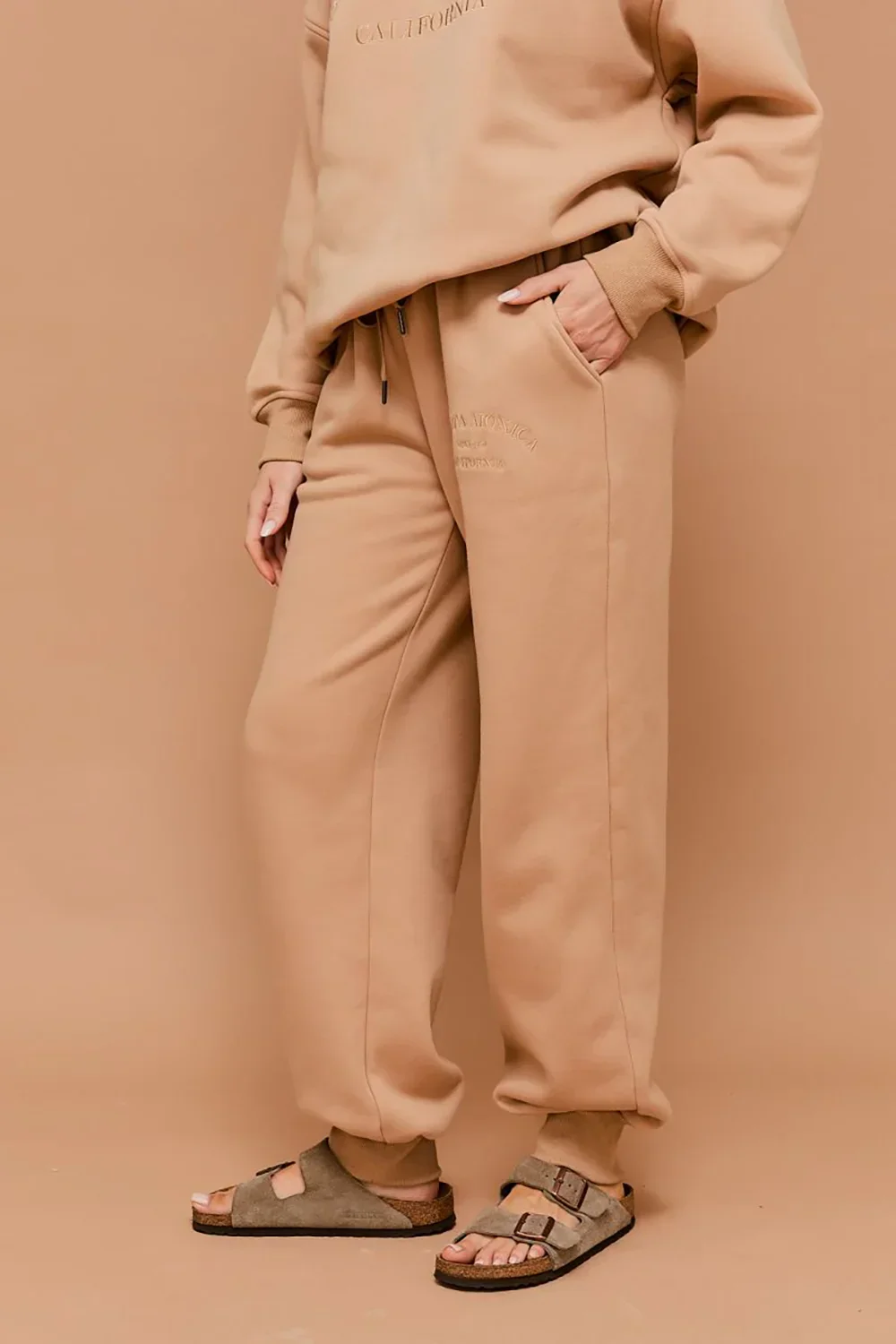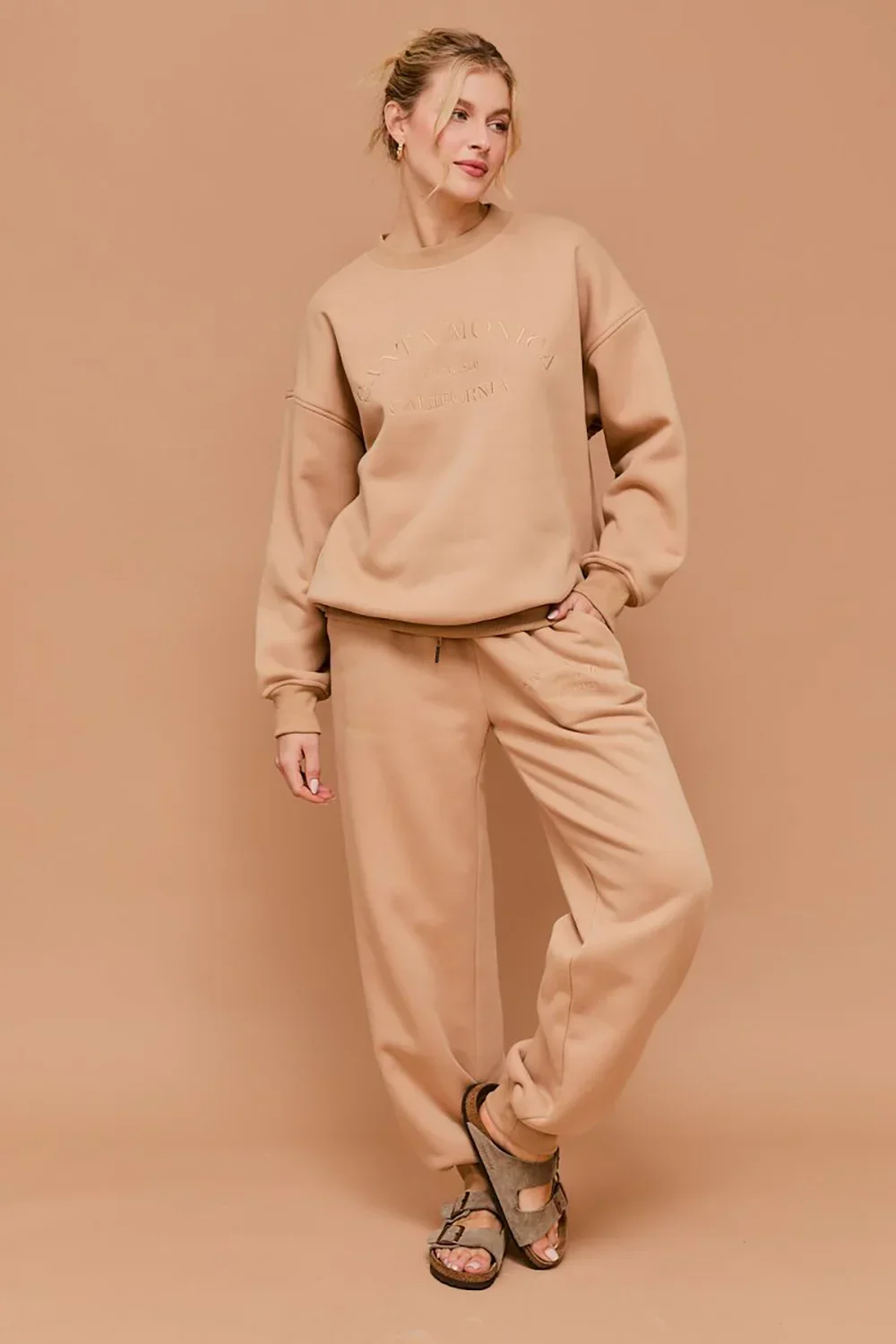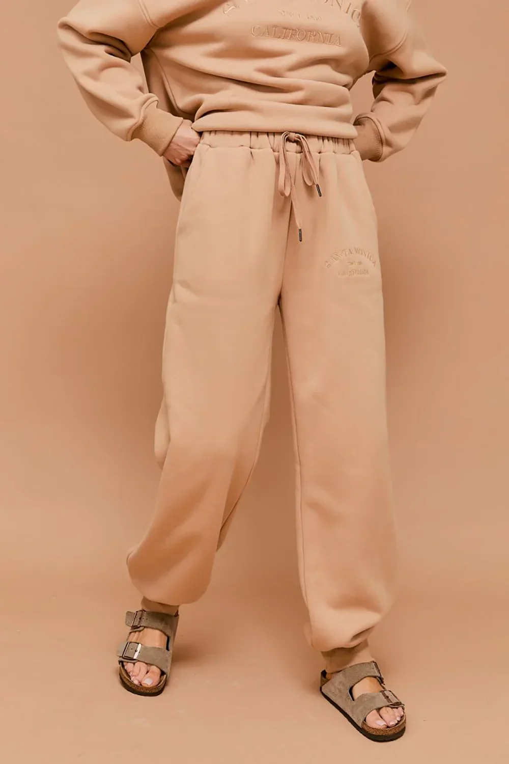 Santa Monica California Embossed Graphic Elastic Waist Drawstring Joggers