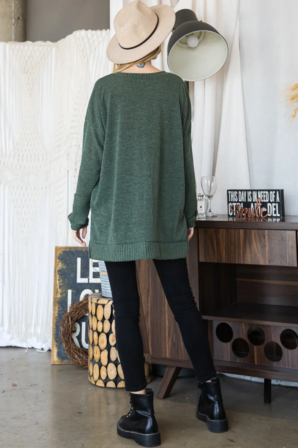 Plus Size Oversized Button Cuff Long Sleeve Tunic Sweater Top